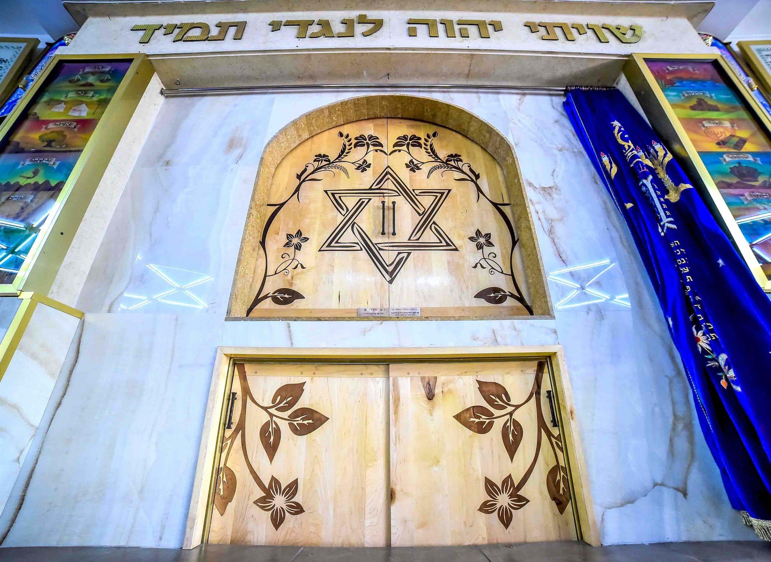 החלק האומנותי ביותר בפרויקט זה היו החלפת דלתות היכל הקודש, בחרדה ניגשנו לעבודה ובנינו דלתות הזזה ענקיות ומאסיביות מעץ מלא מייפל לאחר הבנייה נשלחו הדלתות לצריבה ע"י מכונת לייזר ליצירת הדוגמא הייחודית אשר עוצבה ע"י הנגרייה.