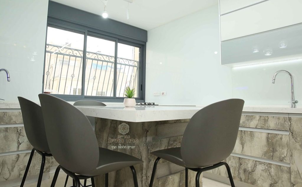 מטבח זה נבנה עבור משפחה מרובת ילדים ונדרשנו למלא את החלל ככל האפשר ובנוסף לתת להם את האופציה של מטבח חלבי ומטבח בשרי.