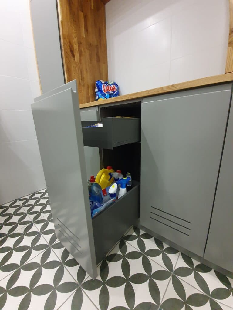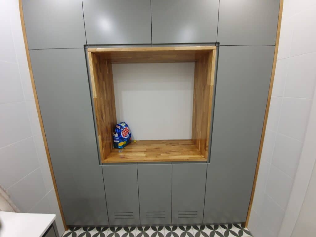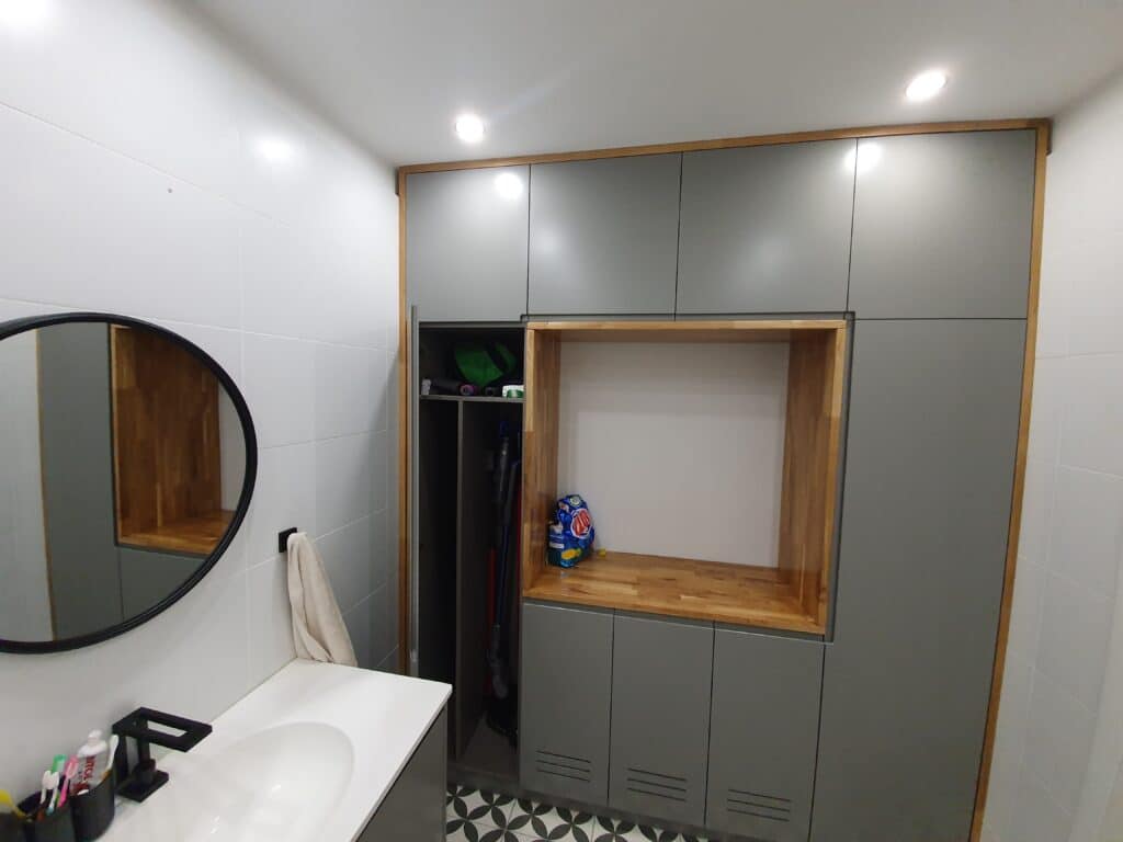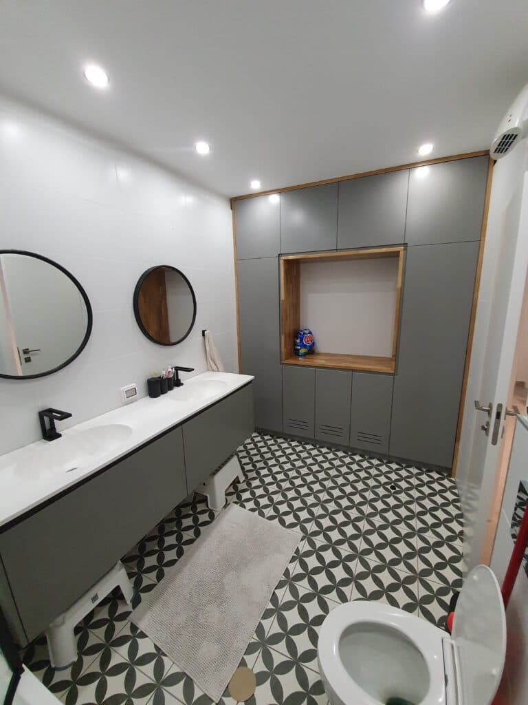 ע"פ בקשת האדריכל ייצרנו את ארונות האמבטיה עם דגם ידית במה, בארון אחד יש שני דלתות פתיחה בלחיצה והארון אמבטיה השני כולל בתוכו 2 מגירות רחבות מחברת בלום.
